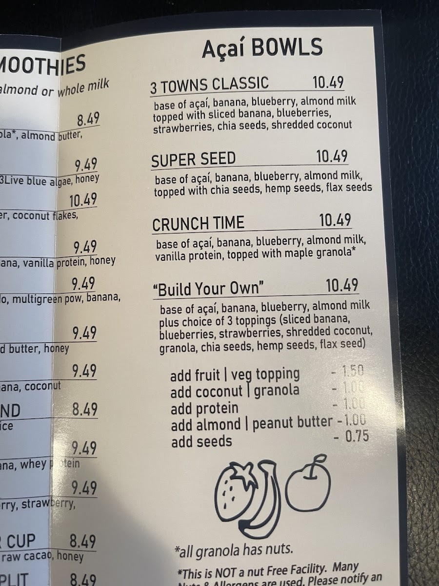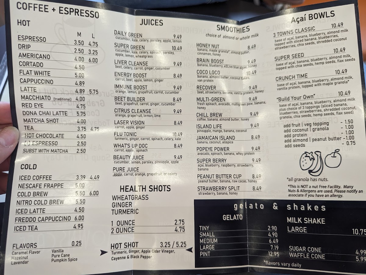 Customer Amber Nicole says it best: "Lovely, I have gotten a smoothie and they do not disappoint. Their pastries and gelato look lovely as well." It’s testimonials like these that solidify 3 Towns as a loved fixture in the neighborhood.